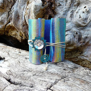 each one-of-a-kind piece has been uniquely layered and can be worn as a cuff bracelet or enjoyed as a stand alone sculptural artwork